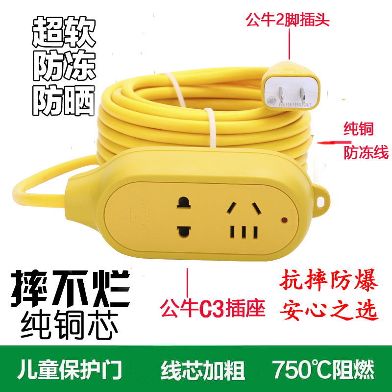 Bull socket fall is not bad custom extension line plug board electric vehicle special plug row 20 30 40 50 meters