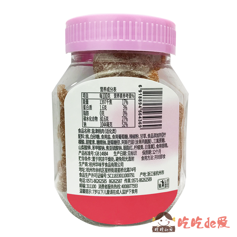 (Hua Wei Heng Shiojin peach meat 160g *10 cans) peach slices dried words plum preserves dried fruit dried snacks