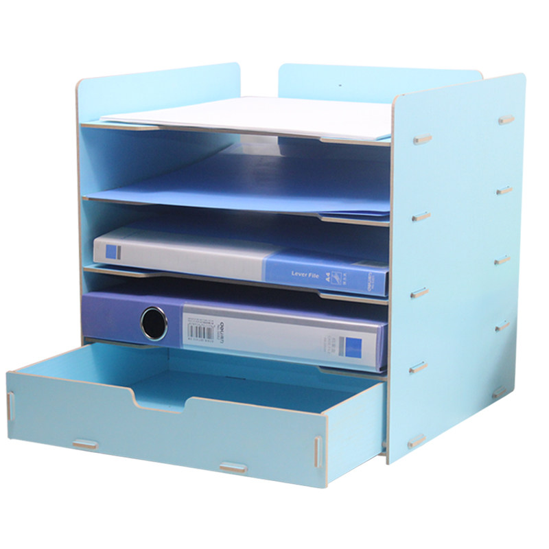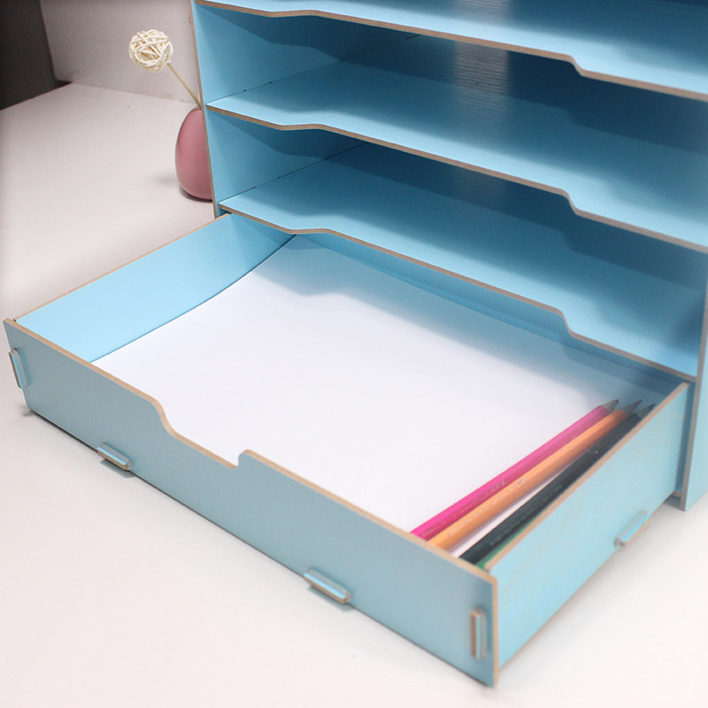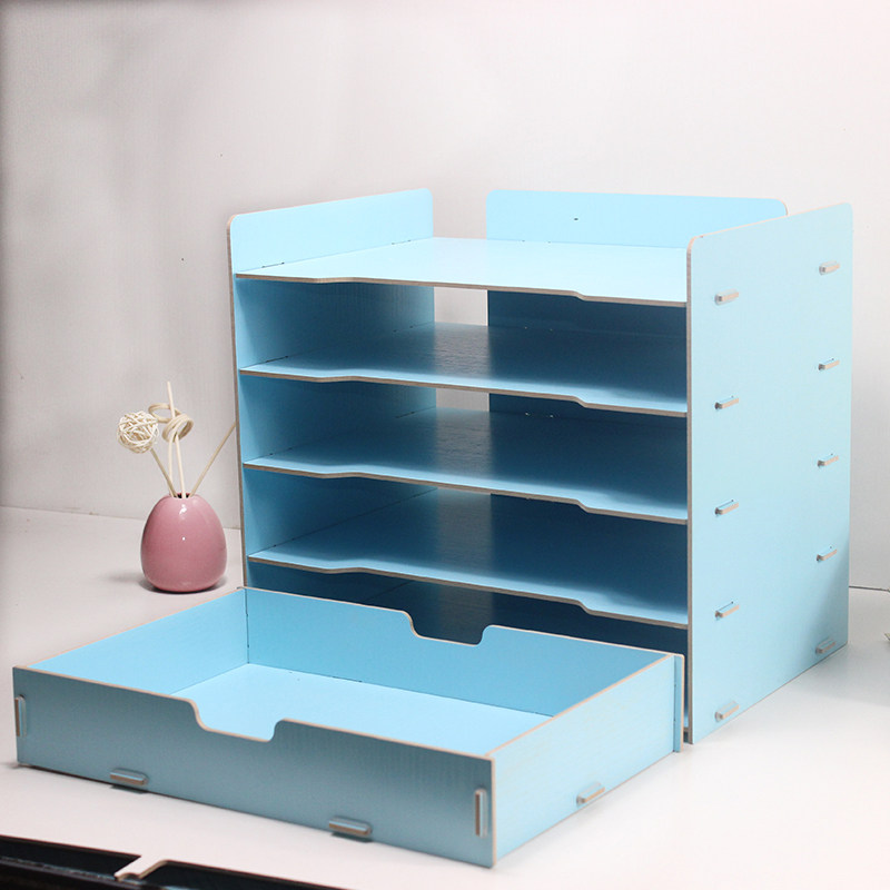 File rack desktop bookshelf creative wood simple A4 multi - layer with drawer - type collection desktop magazine data frame