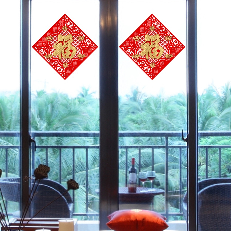 Zhongchuan Mei 2021 Creative Spring Festival Blessing word More than a year door stickers hollow window grille self-adhesive flocking three-dimensional Jinfu word