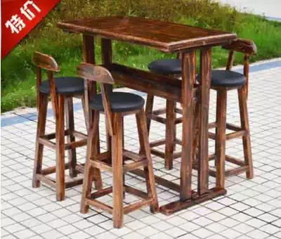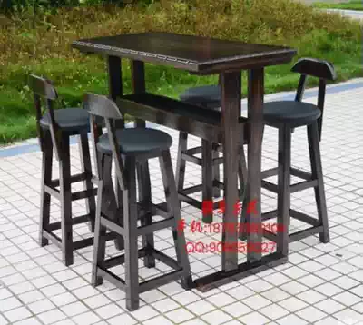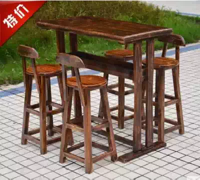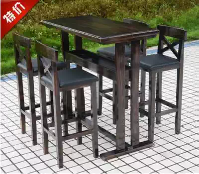 Factory direct sales bar table and chair combination outdoor courtyard solid wood bar chair coffee high-legged table and chair set charcoal