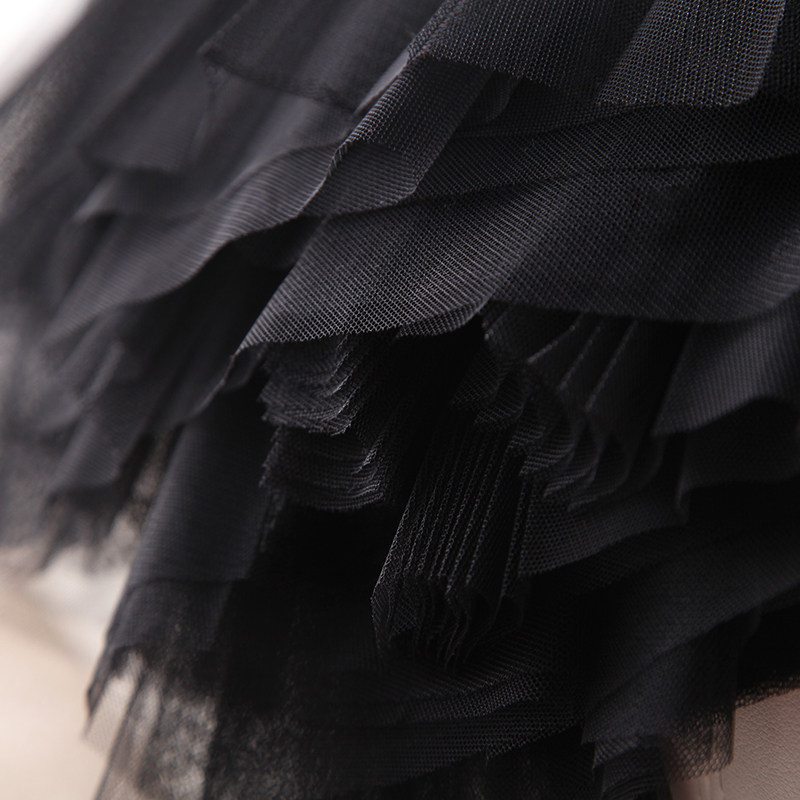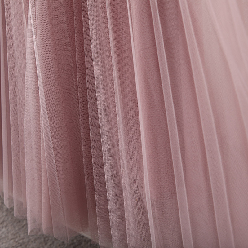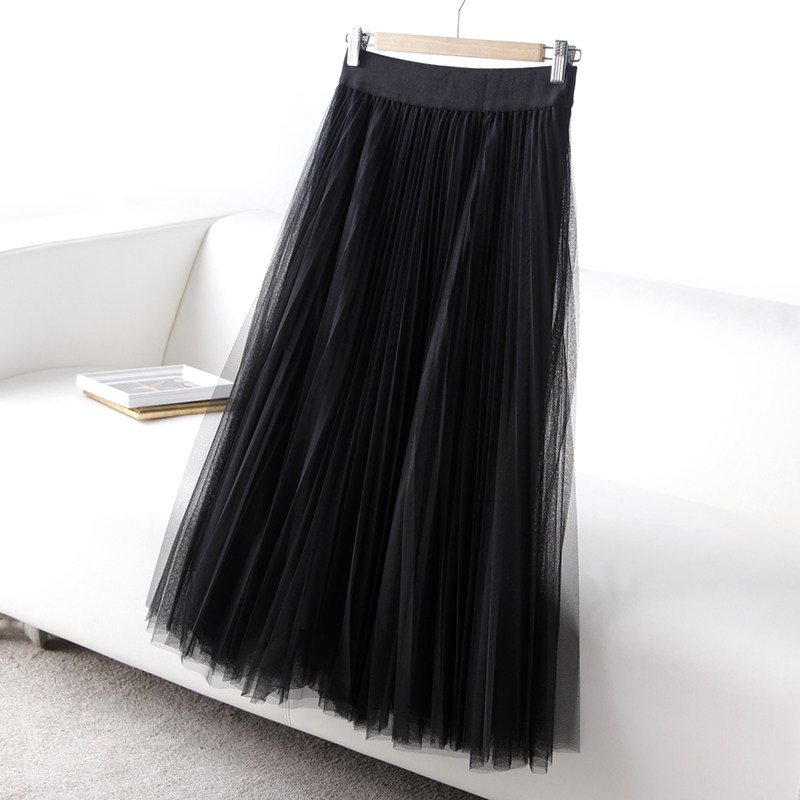 Simple, fashionable and versatile three-layer mesh pleated skirt Women's high waist elastic waist mid-length skirt 62567