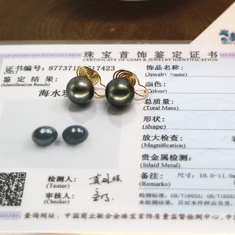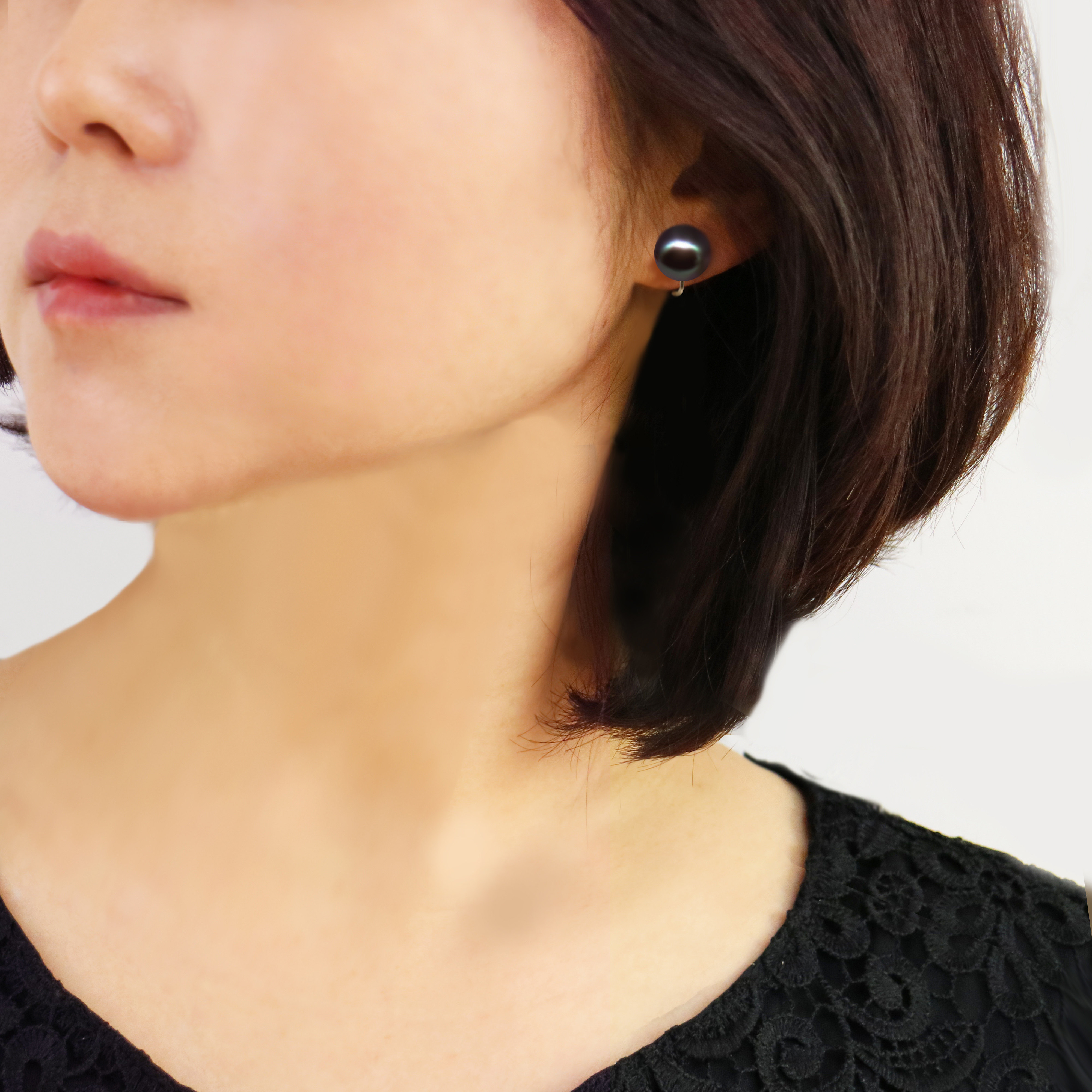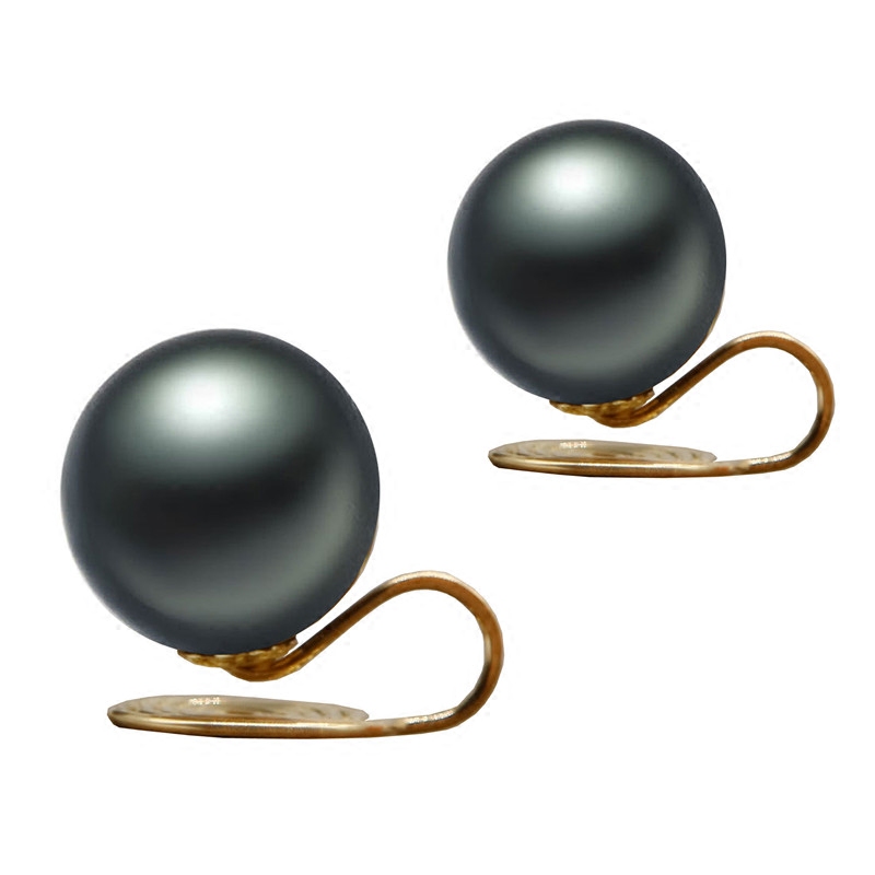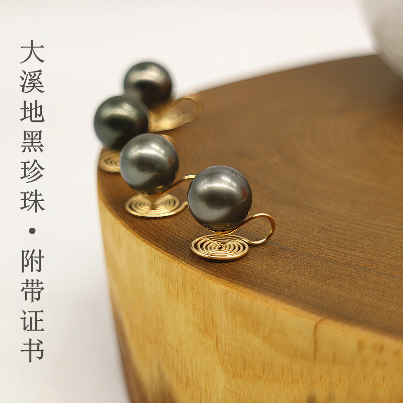 Earless piercing perfect circle glare Tahitian black pearl 18K pure handmade simple ear clip 10-11mm light luxury earrings