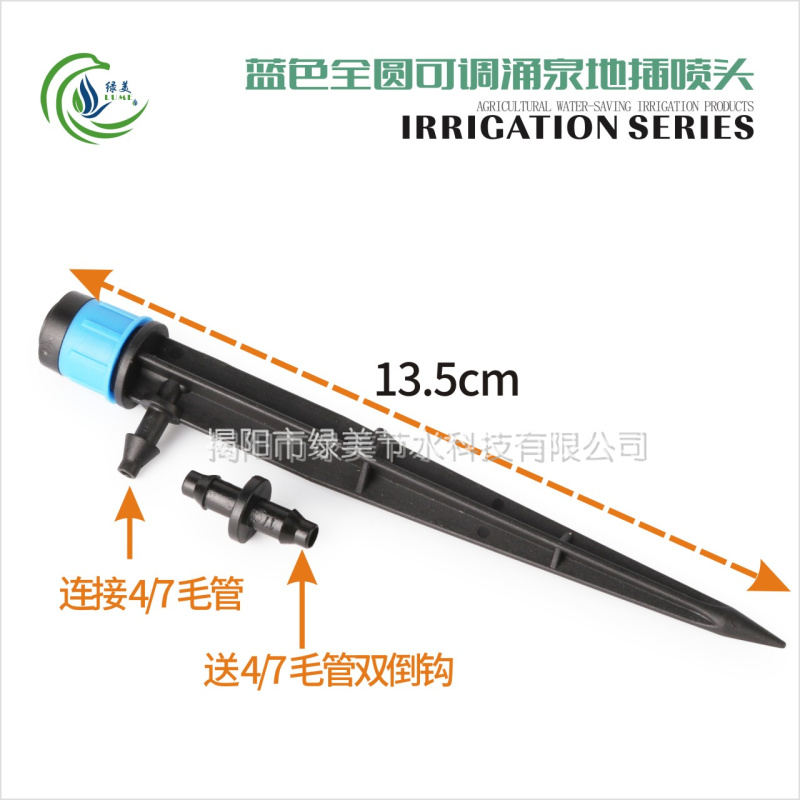Blue full circle adjustable spring spray dripper black full circle adjustable spring spray dripper blue spring ground insert nozzle 13cm with double barb