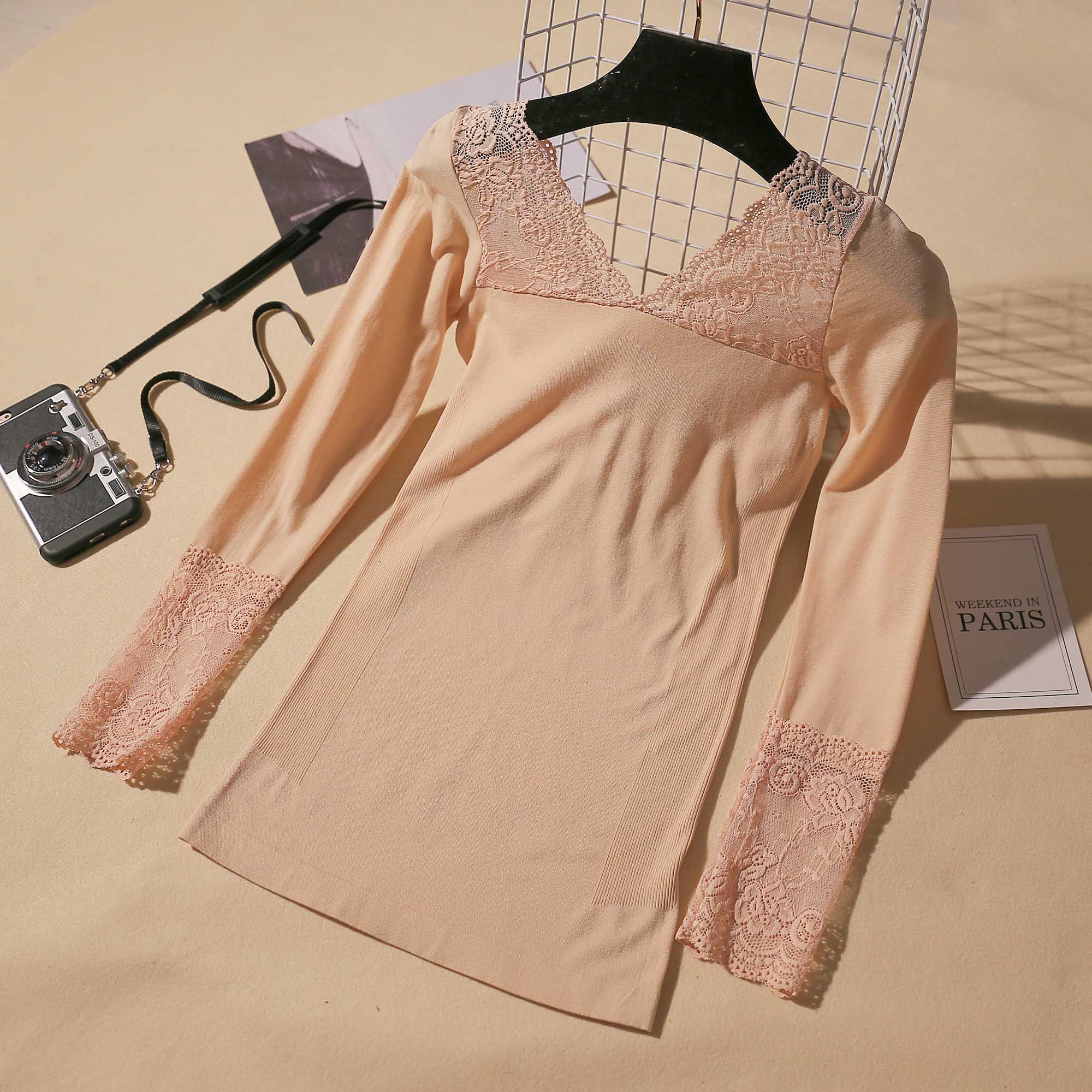 Spring and autumn bottoming lace top women's net yarn sexy long-sleeved t-shirt student body tight shirt underwear women's thin section