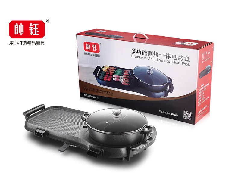 New ultra-large Korean-style hot pot barbecue integrated pot medical stone electric hot roasting pan baking pan oven double temperature control