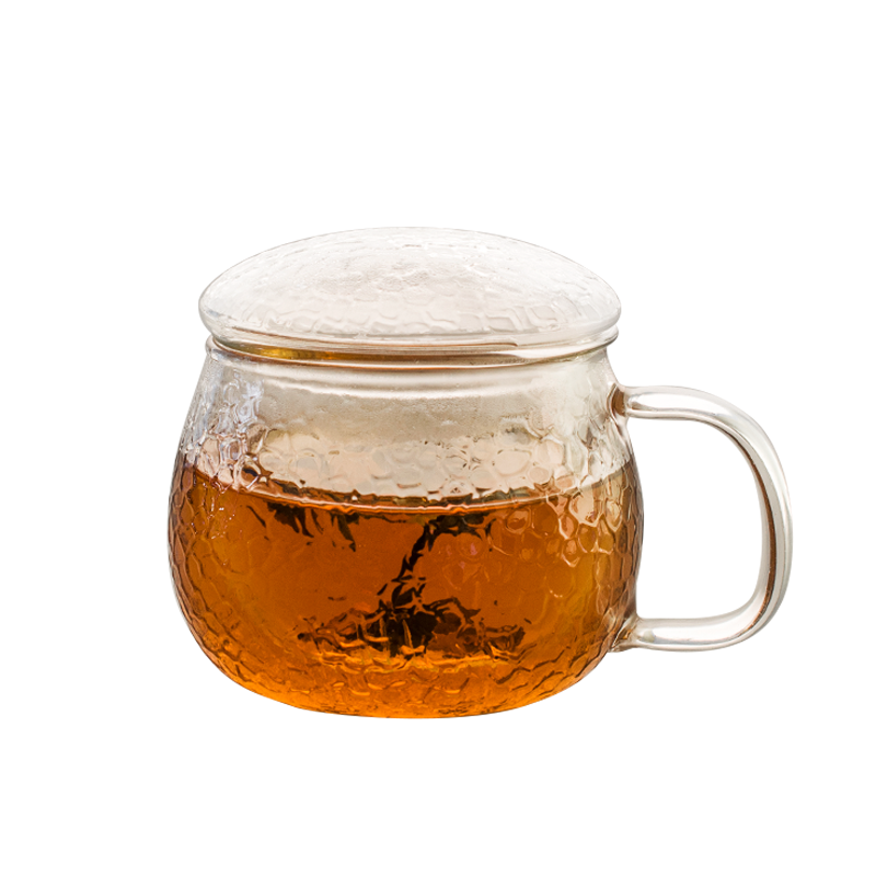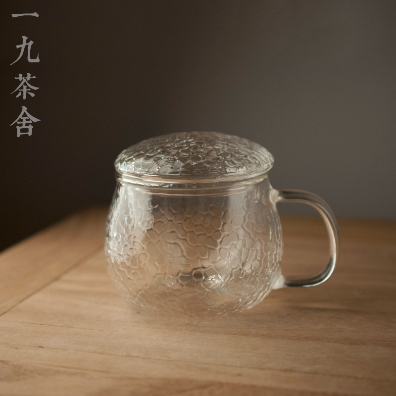 One-nine tea house hammer tattered three-piece tea cup heat resistant glass cup transparent tea cup with lid filter water glass