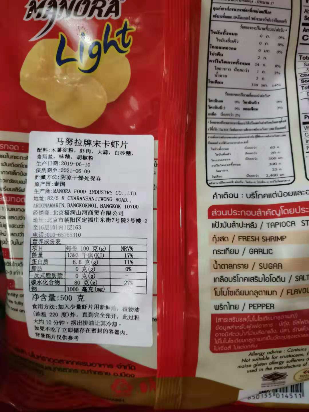 White Bag Song Carloba Lobster Fresh Shrimp Sheet Red Bag Thai Manurra Shrimp Sheet (Garlic Flavor Slightly Spicy)