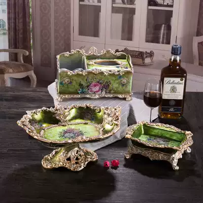 European retro fruit plate set Home living room creative luxury decoration ornaments fruit plate three-piece set Home