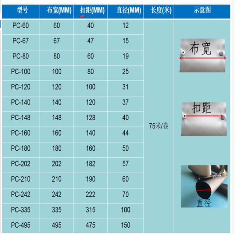 Diameter 12mm PC-60 1m Diameter 15mm PC-67 1m Diameter 19mm PC-80 1m Diameter 25mm PC-100 1