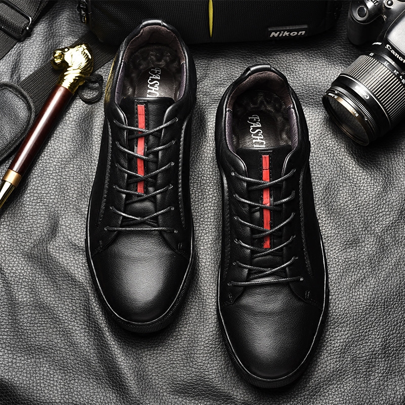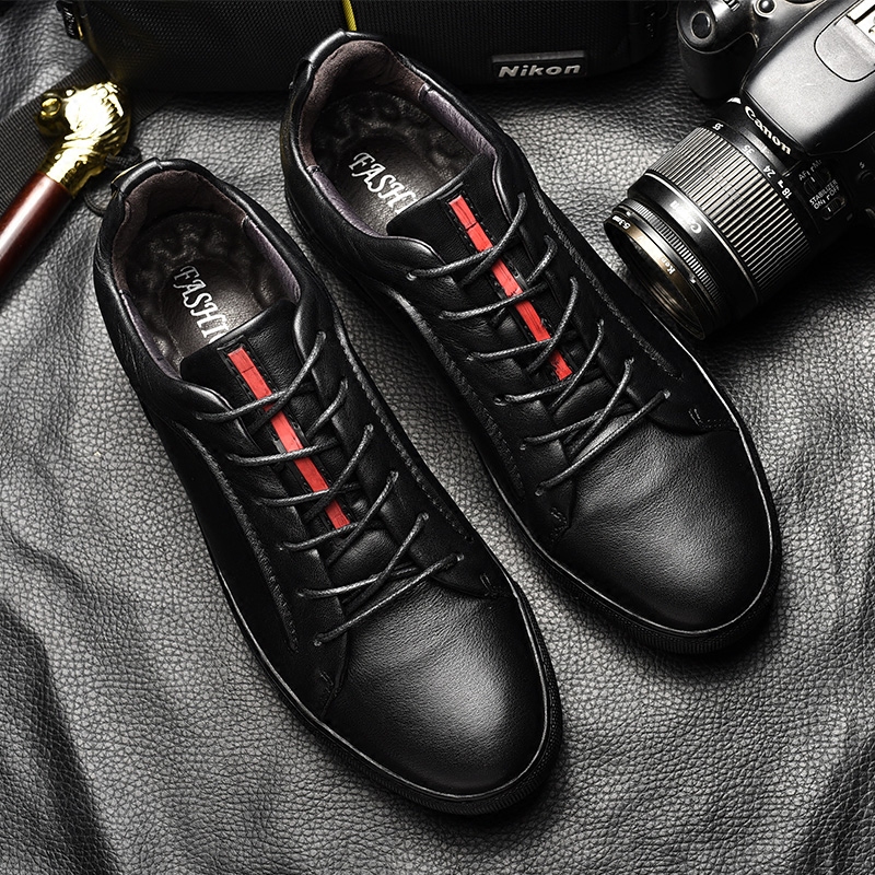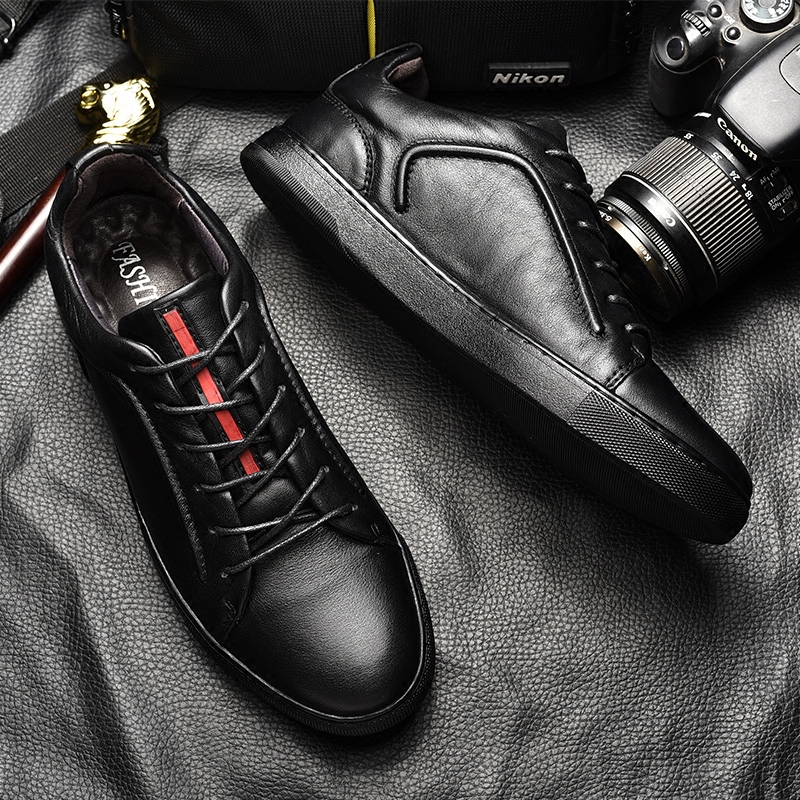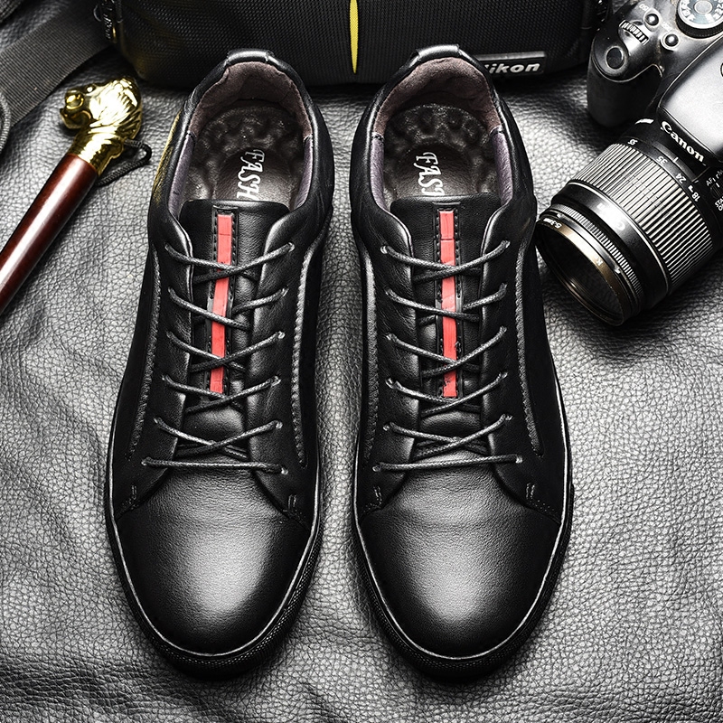 European Station Autumn Winter Small Black Shoes Men Genuine Leather Breathable Casual Shoes Han Edition 100 Hitch Men's Board Shoes Youth Black Tide Shoes-Taobao