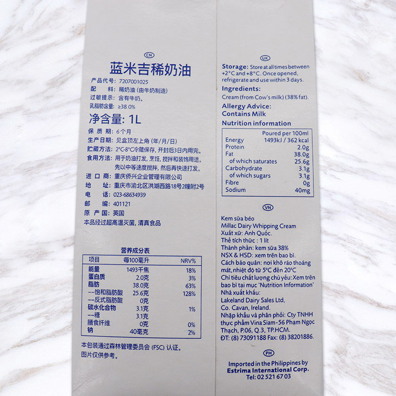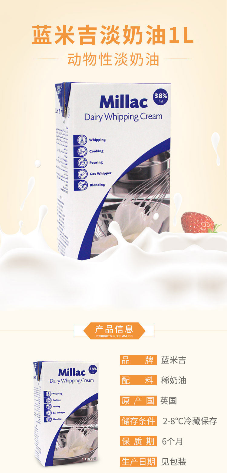 UK Imports Blue Windmill Blue Migi Animal Light Milk Oil 1L* 12 Box whole box of thin cream cake baking raw material