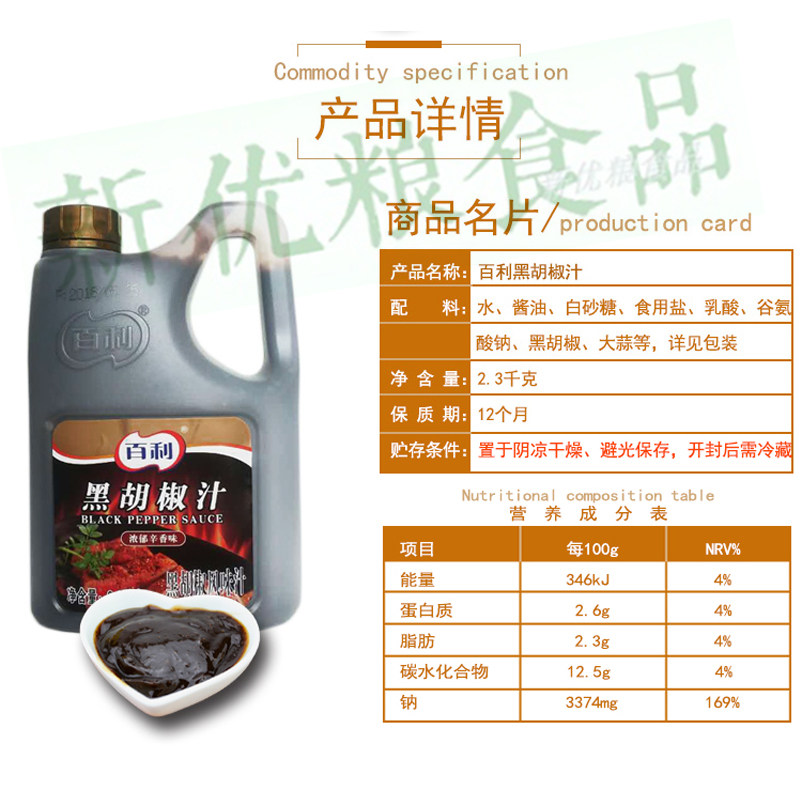 4 barrels X 2 3kg Baili black pepper sauce Black pepper sauce onion grab cake raw material adjustment and baking