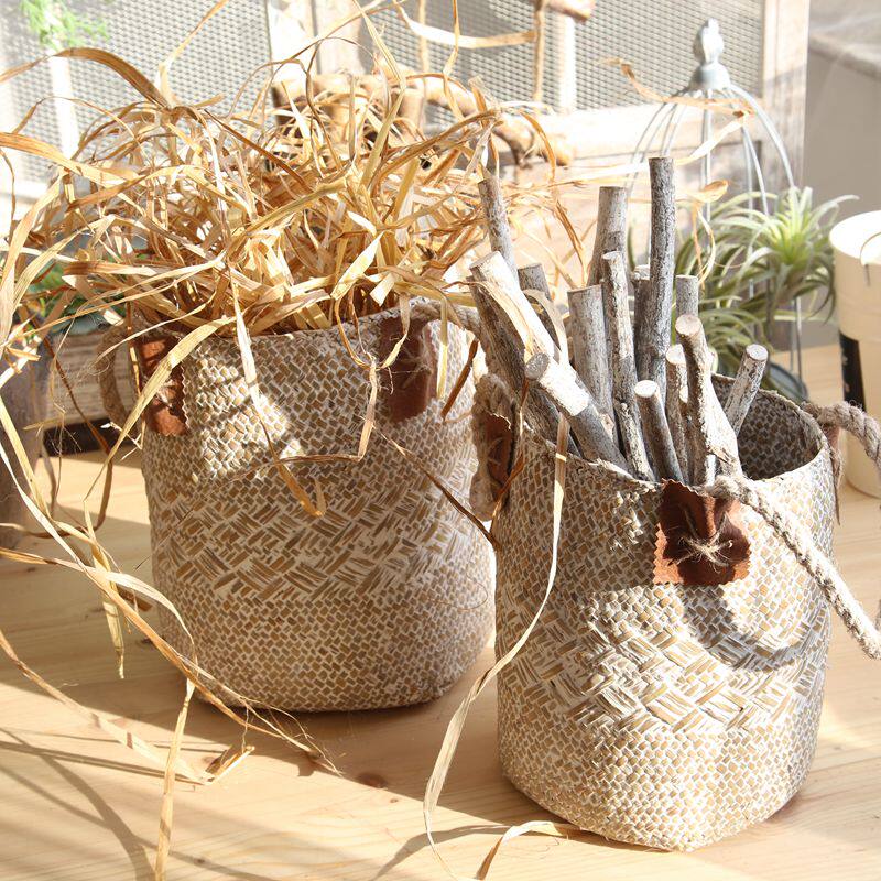 Straw rattan wicker wall hanging garden large fleshy golden kudzu basket flower basket flower pot creative natural hand woven basket