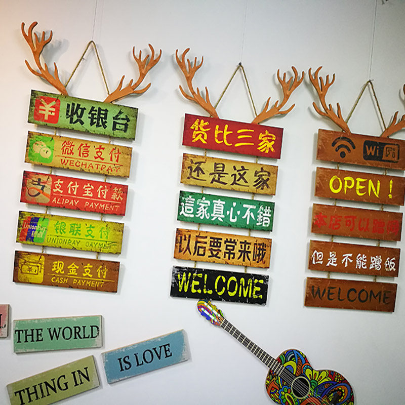 Retro wood painting custom wall hanging creative wall listing wall decoration bar dining room milk tea shop wall soft decoration