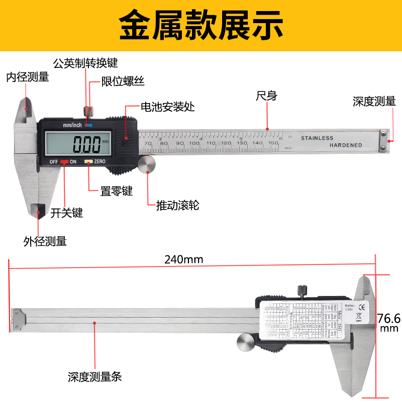 150 carbon fiber section (blister packaging) 0-150mm150 carbon fiber section (plastic box packaging) 0-150mm metal section (plastic box packaging) 0-150mm Industrial grade splash-proof water