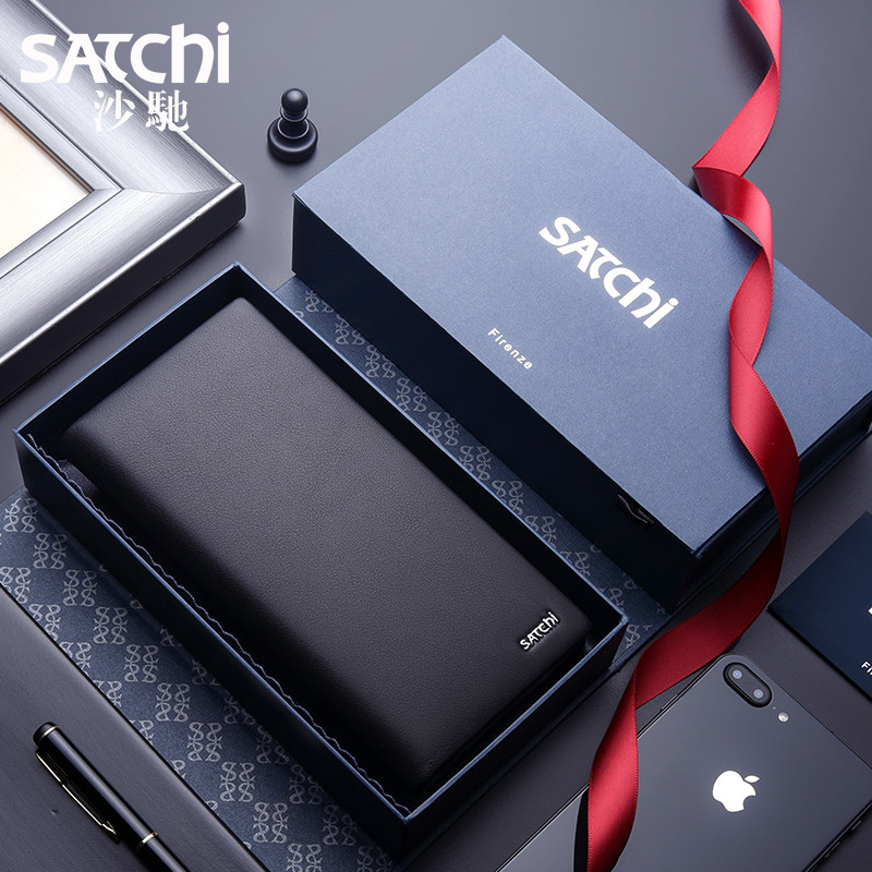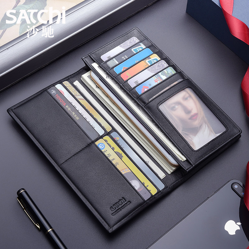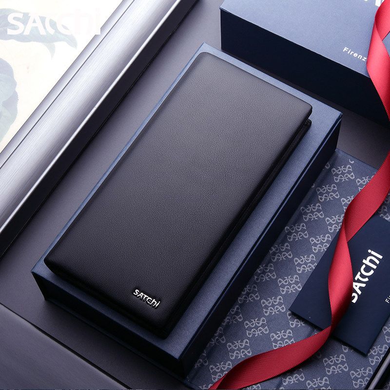 Sachet Men Wallet Long Version Genuine Leather Money Clip Men Youth Business Brief Bull Leather Male Style Leather Clips