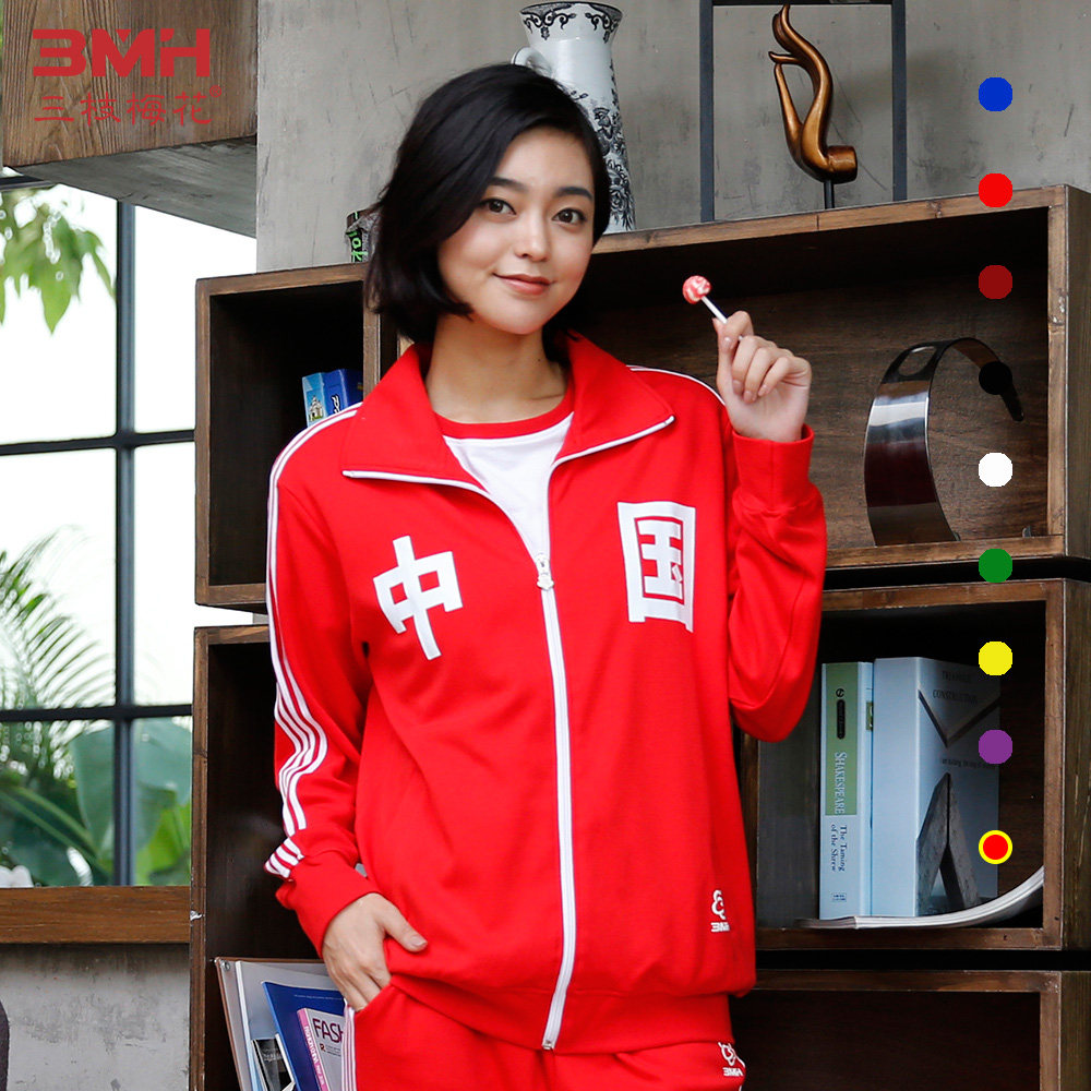 Three-Branch Plum sportswear men and women couples cotton Chinese jacket casual cardigan sweater Autumn Winter national tide jacket