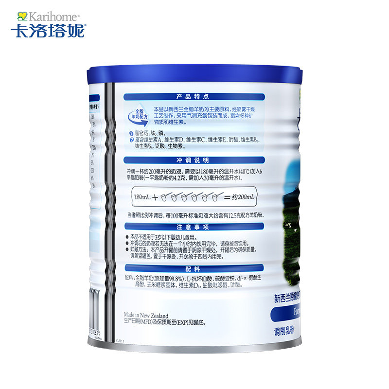 karihome carlottaanie children students full fat high calcium goat milk powder 400g * 4 cans for adults