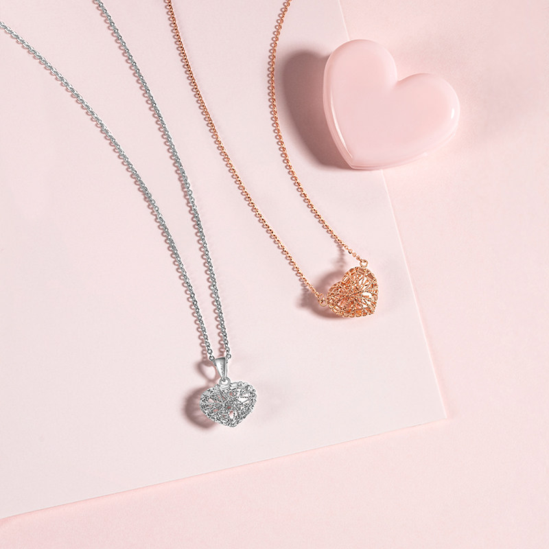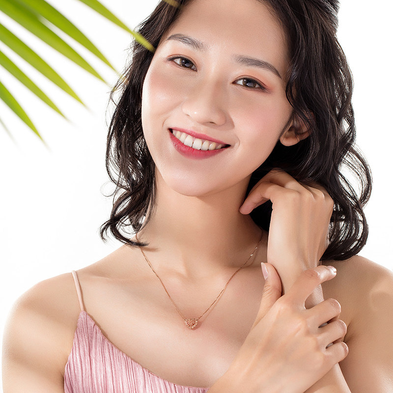 Liufu jewelry 18K gold necklace Love wrapped heart pendant Color gold necklace set chain L18TBKN0032R