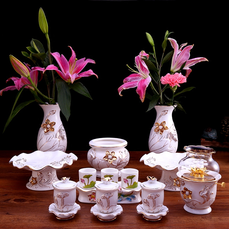 Painted ceramic tribute plate for Buddha fruit plate Guanyin God of wealth lotus tribute plate relief for fruit plate Buddha hall for fruit plate
