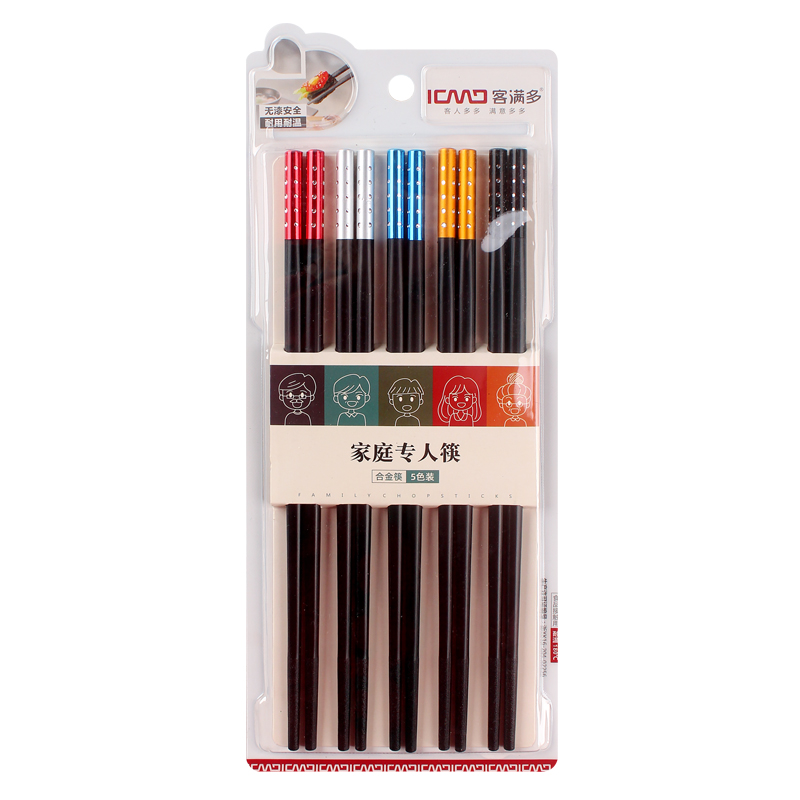 Full family hotel fast high-grade alloy chopsticks set 5 pairs of household non-slip tableware stainless steel KC882