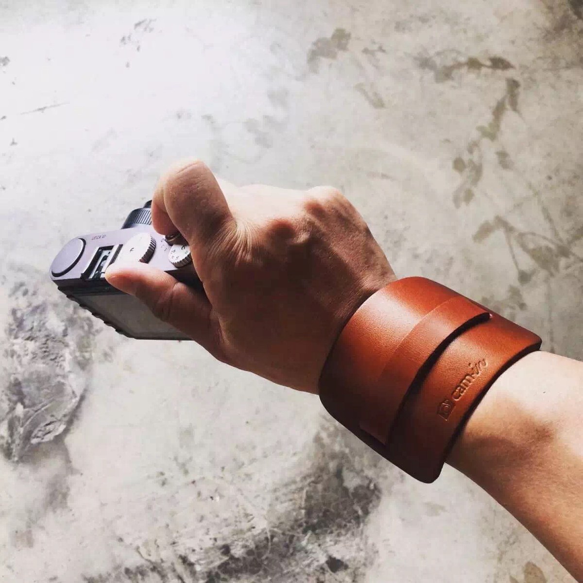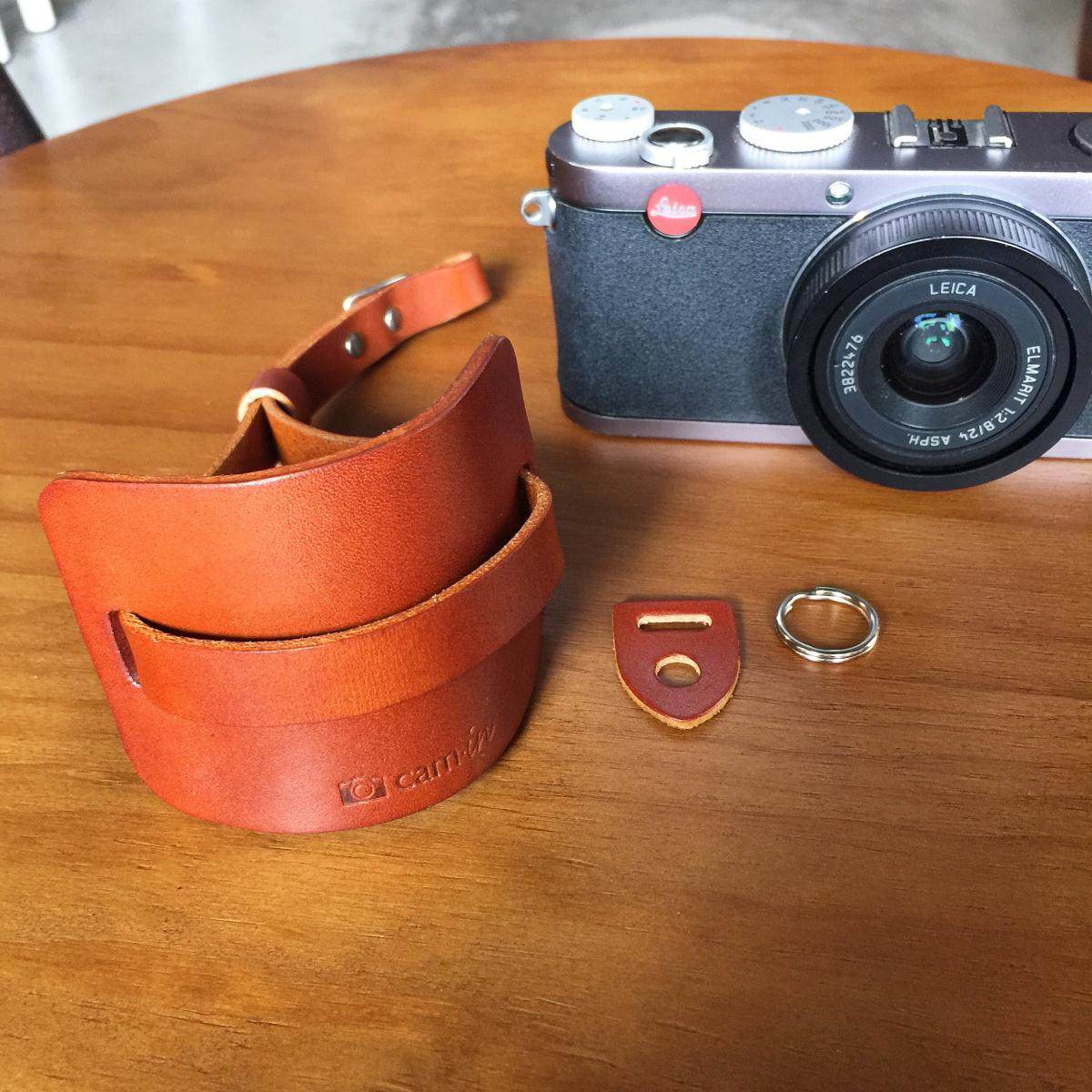 cam-in Italian original vegetable tanned leather camera wristband universal interface WS017