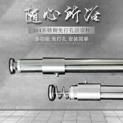 Bath curtain rod set no punch simple installation 304 stainless steel powder room telescopic rod clothes door and window straight rod