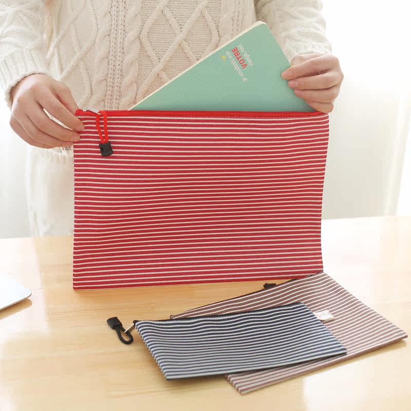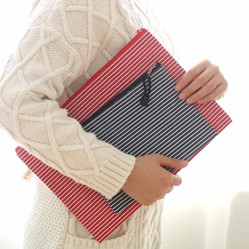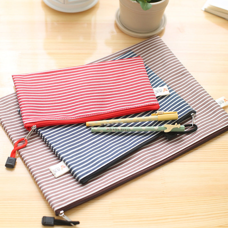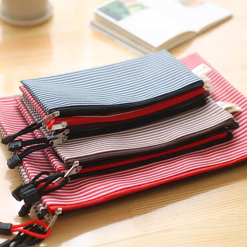 Vinhai Selected Yanle Student Stationery Simple pure color striped Racing stationery bag Canvas Pen bag A6