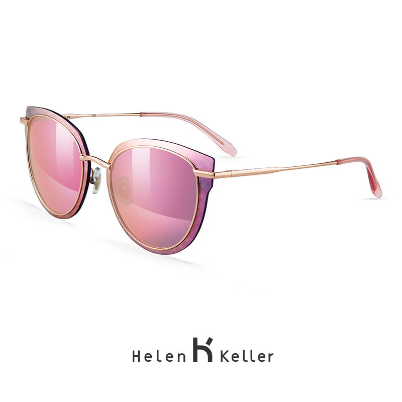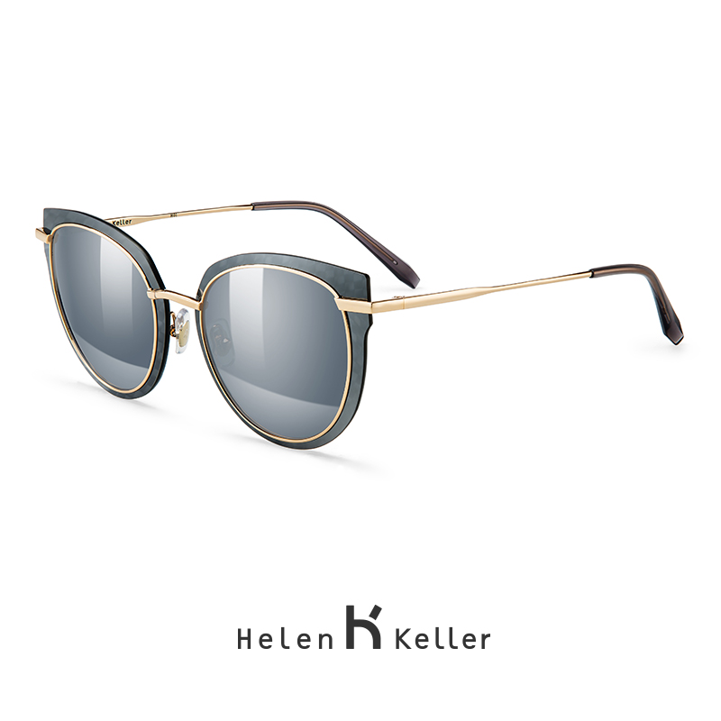 Helen Keller's new lady polarized ink mirror cat eye tide metal eye frame driving mirror with small face sunglasses 8715