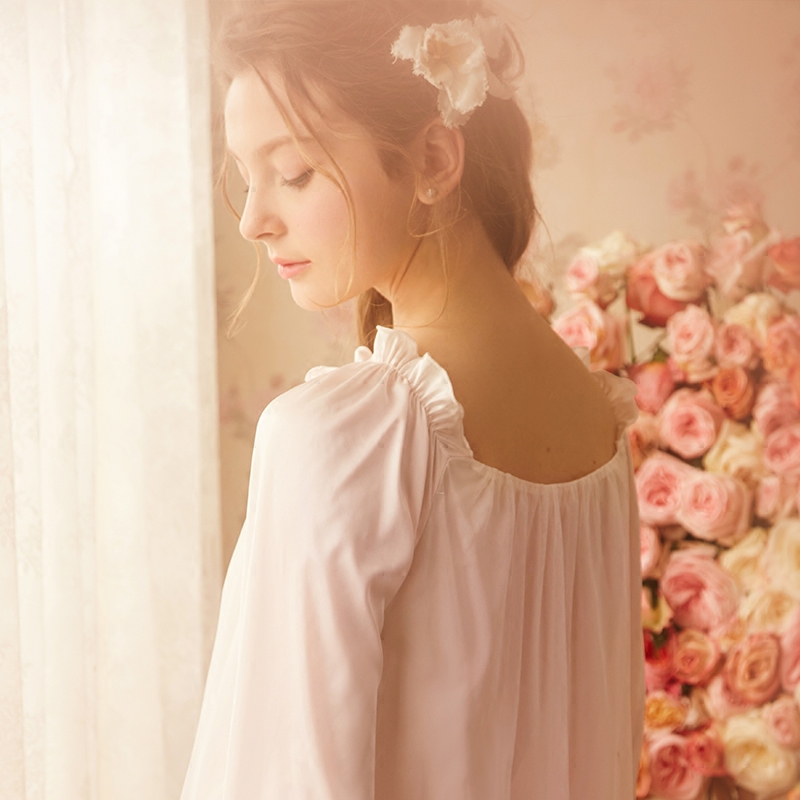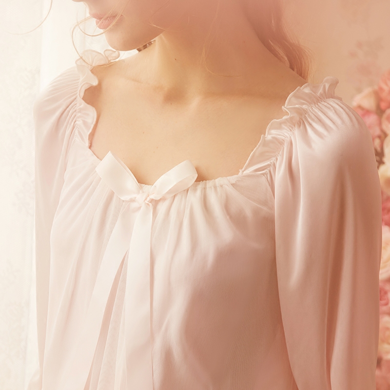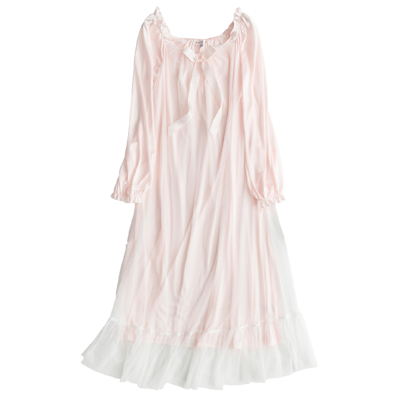 RoseTree sexy nightdress female spring and summer sweet long-sleeved long-sleeved princess court style pajamas spring and autumn ice silk nightdress