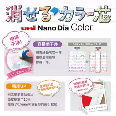 Japan uni Mitsubishi color automatic lead pen replacement Nano Dia0 5-202NDC red and blue colorful lead core mixed color is not easy to break Primary School students stationery painting and writing replacement core 0 7