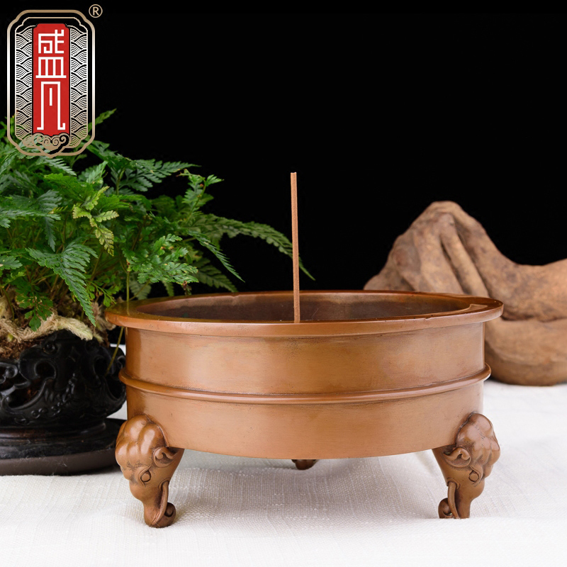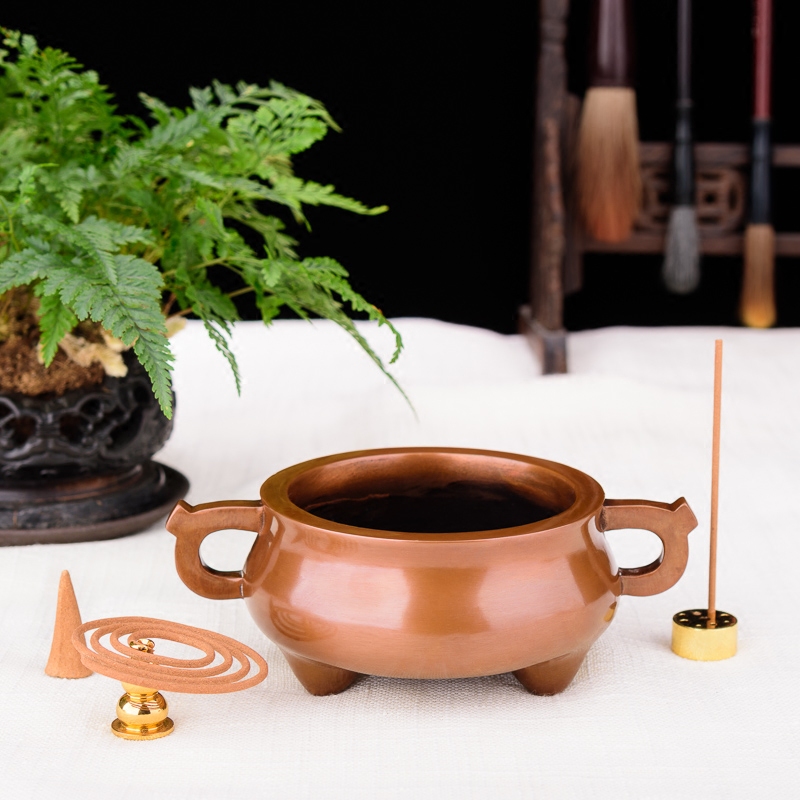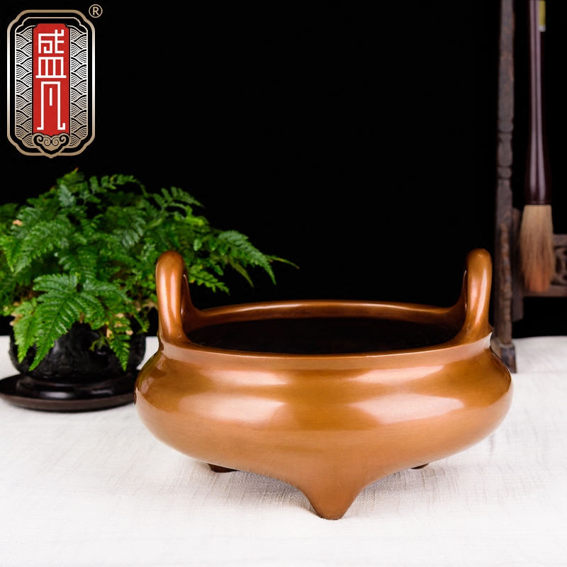 Red copper pledge diameter furnace numismatic furnace red copper with bottom double fishing ear incense stove red copper three-foot seven-wire furnace Elephant nose three foot single string furnace red copper special big number punching ear stove