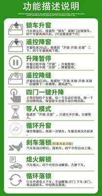 Swift (up 4 windows) Swift (up 4 down 4 Windows One-key lift) Swift (up and down lock) Tianyu SX4 (up 4 windows) Tianyu SX4 (up 4 windows, one key up