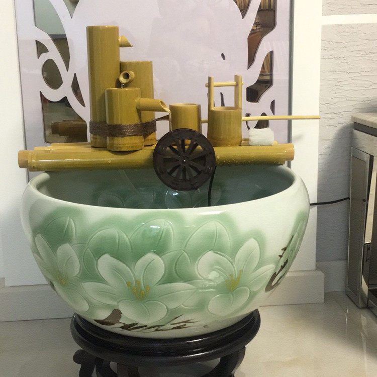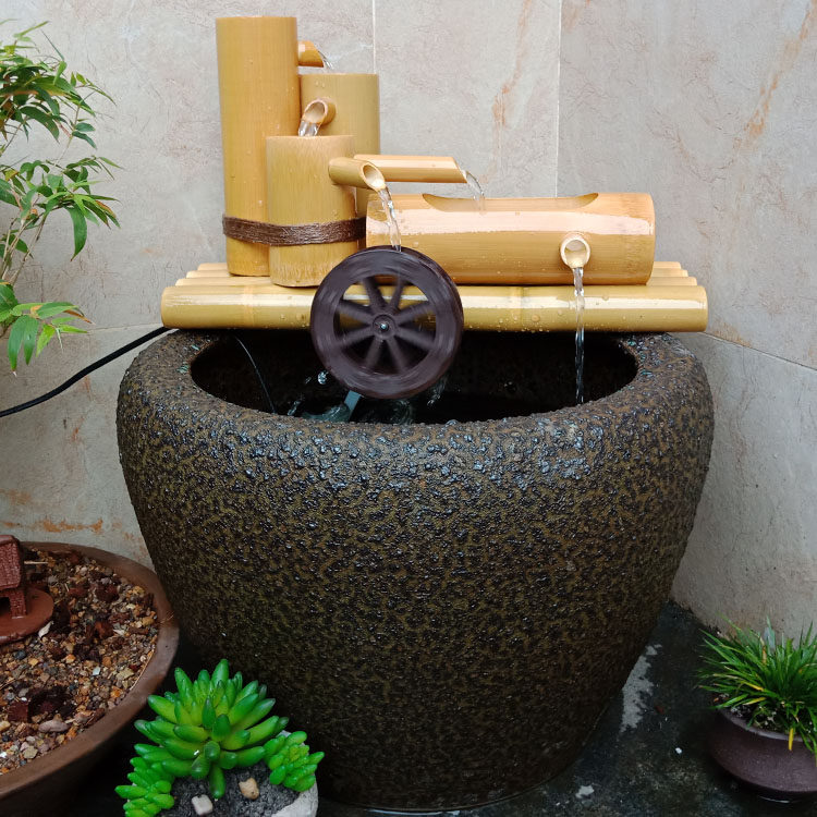 Fung Feng Shui Wheel Bamboo Flowing Water Instrumental Fountain Pendulum Pieces Living Room Office Waterscape Ceramic Fish Tank Building humidifiers