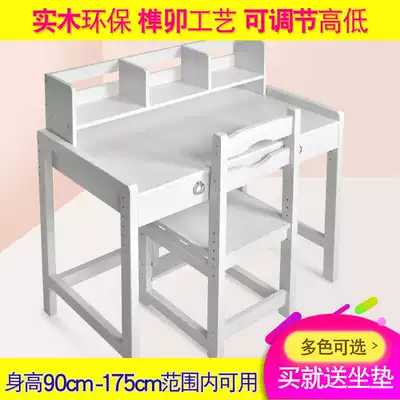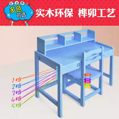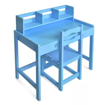 Children's desk bookcase combination Sky blue boy learning desk girl solid wood multi-function lifting home desk