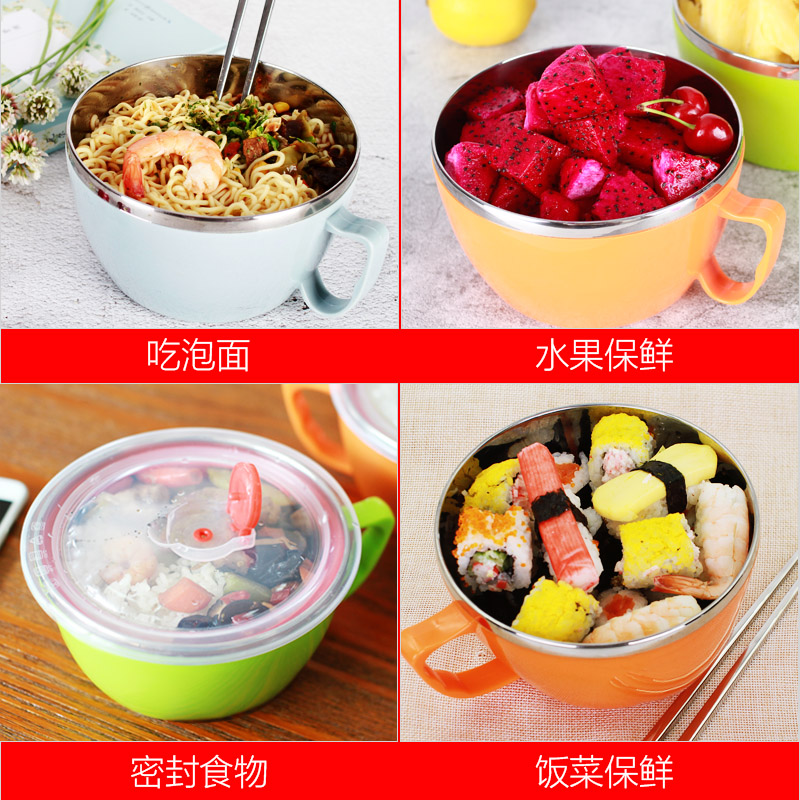 304 stainless steel bowl instant noodle bowl with lid instant noodle cup soup noodle instant noodle bowl large student lunch bowl