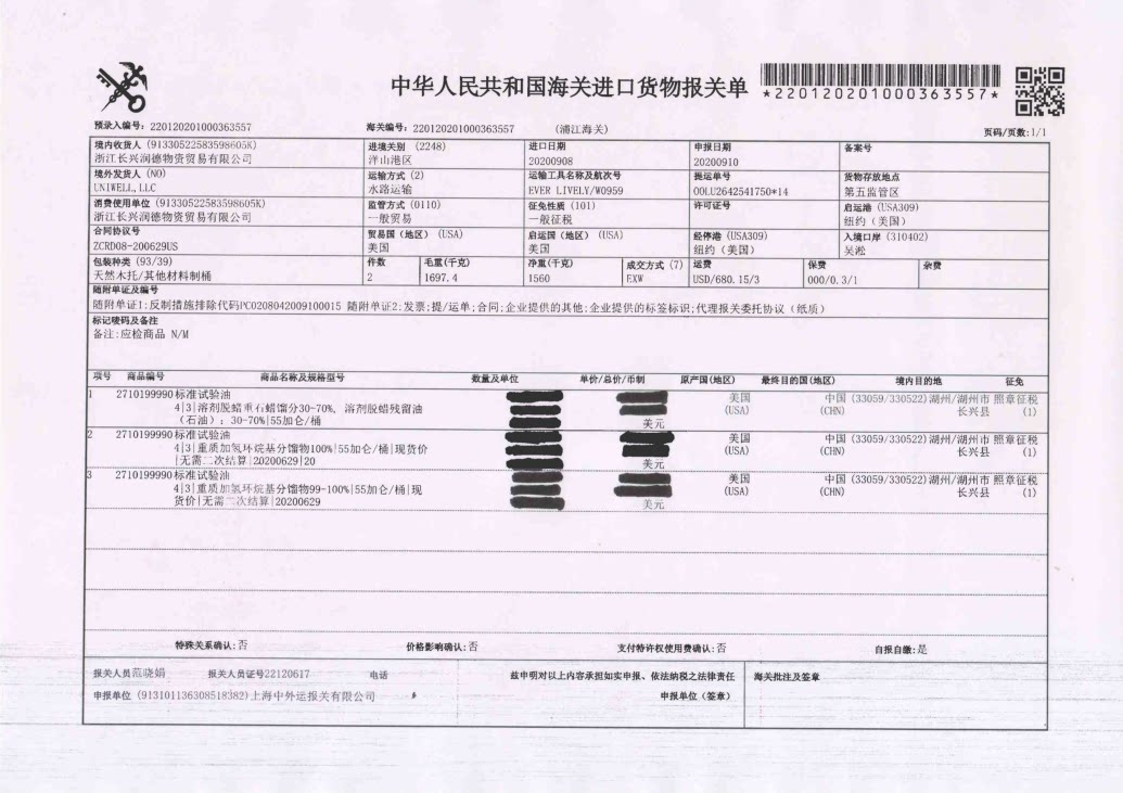 American rubber experimental oil Standard oil reference oil test oil ASTM1#oil IRM901 IRM902 IRM903