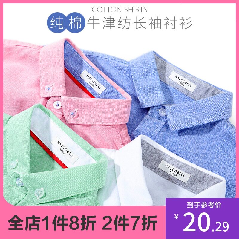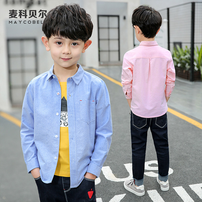 Boys 'long-sleeved shirt Spring and Autumn children's shirt Pure cotton boys' white inch clothing Oxford spinning lapel top performance suit tide