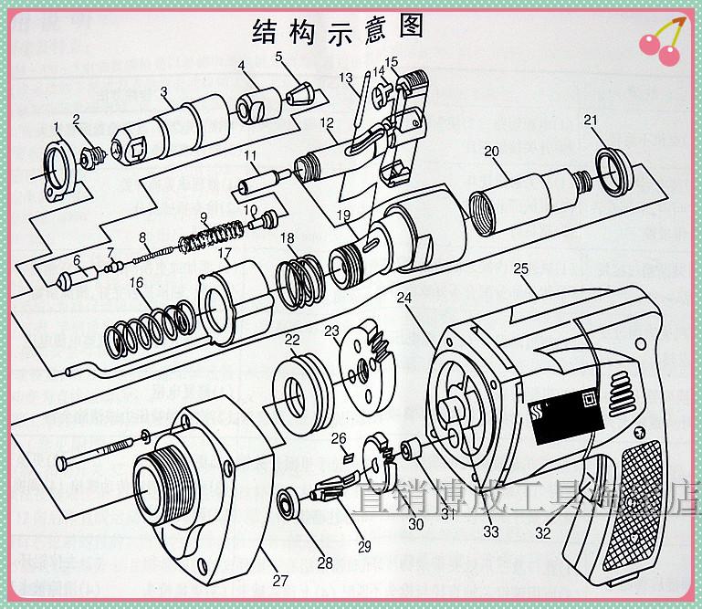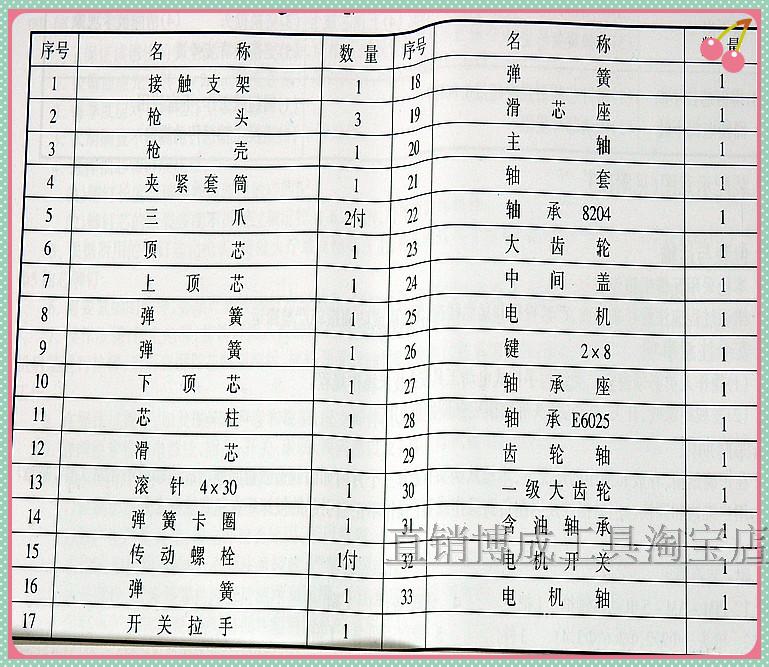 Spring serial number 8 switch handle set number 1 17 gun head sequence number 2 gun shell sequence number 3 clamping sleeve sequence number 4 three-claw sequence number 5 top-core sequence number 6 upper core sequence number 7 lower top core sequence number 10 core column sequence
