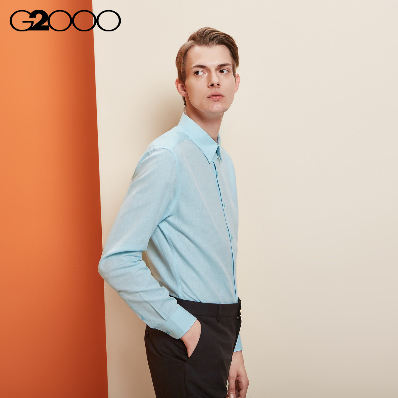 G2000 thin shirt men long sleeve Korean version of professional work dress inside the bottom slim youth shirt