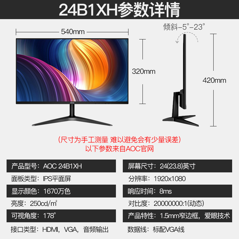 AOC 24B1XH LCD monitor desktop computer screen 24 inch 23.8 inch HDMI HD IPS plane