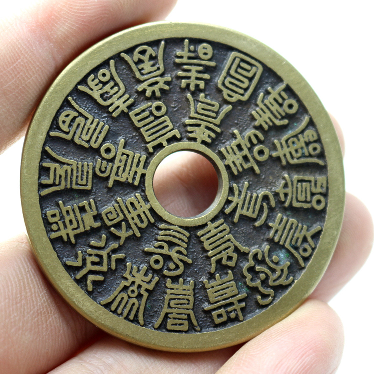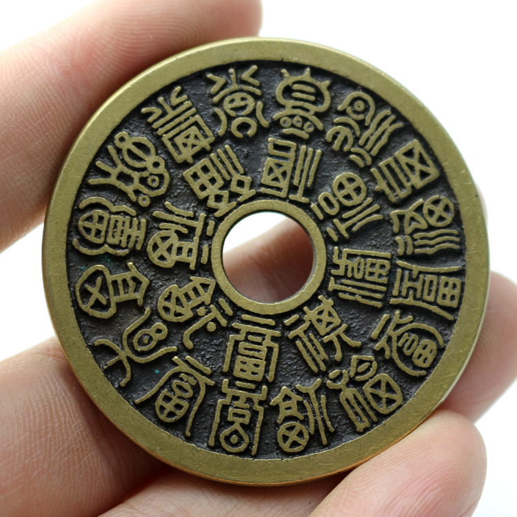 Antique copper coins ancient coins round hole Fu shou spend money 24 Fu Shou Zhu Shou copper spend money collection yellow bright wrapped pulp