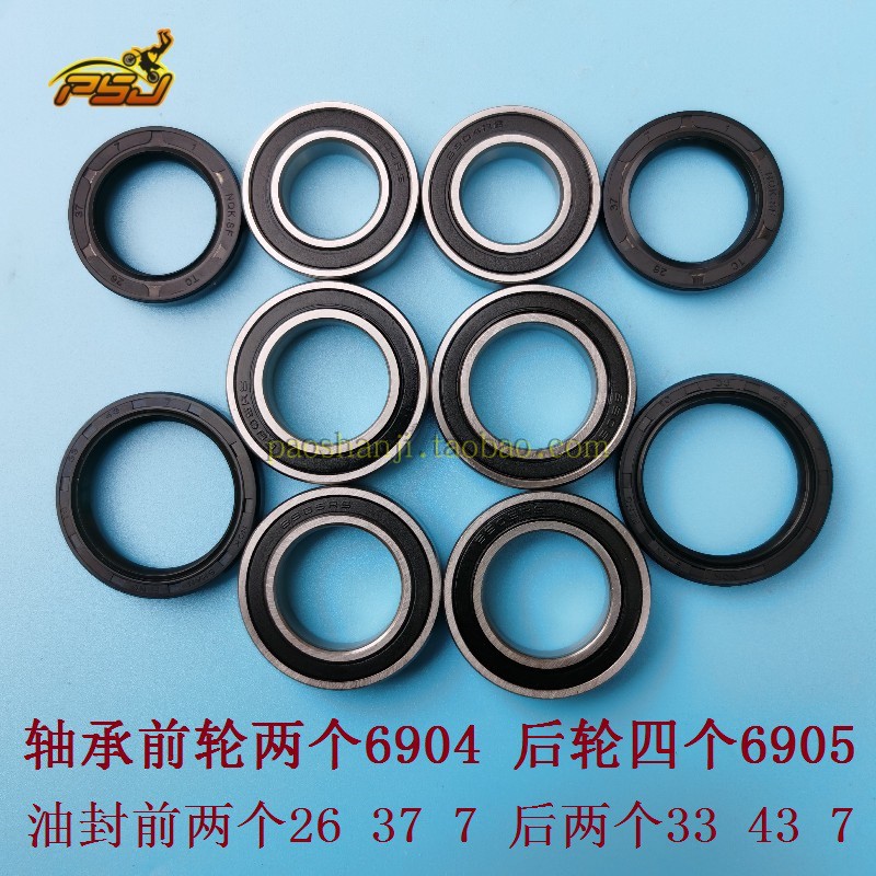 Front and back six bearings + four oil seals front and rear bearings + four oil seals front wheel bearings two + oil seals two rear wheels four bearings two oil seals rear wheel bearings three + oil seals two front wheel bearings 69