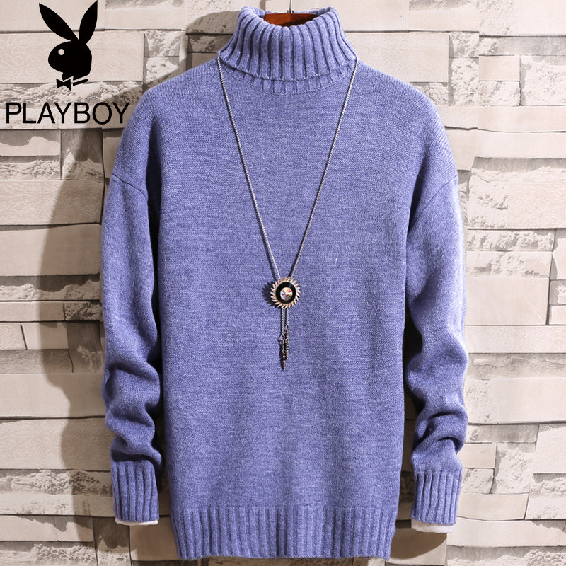 Playboy autumn and winter turtleneck sweater men's thickened warm sanitary clothing personality Korean version of the slim knitted bottoming shirt