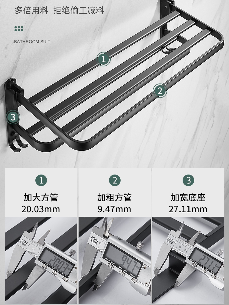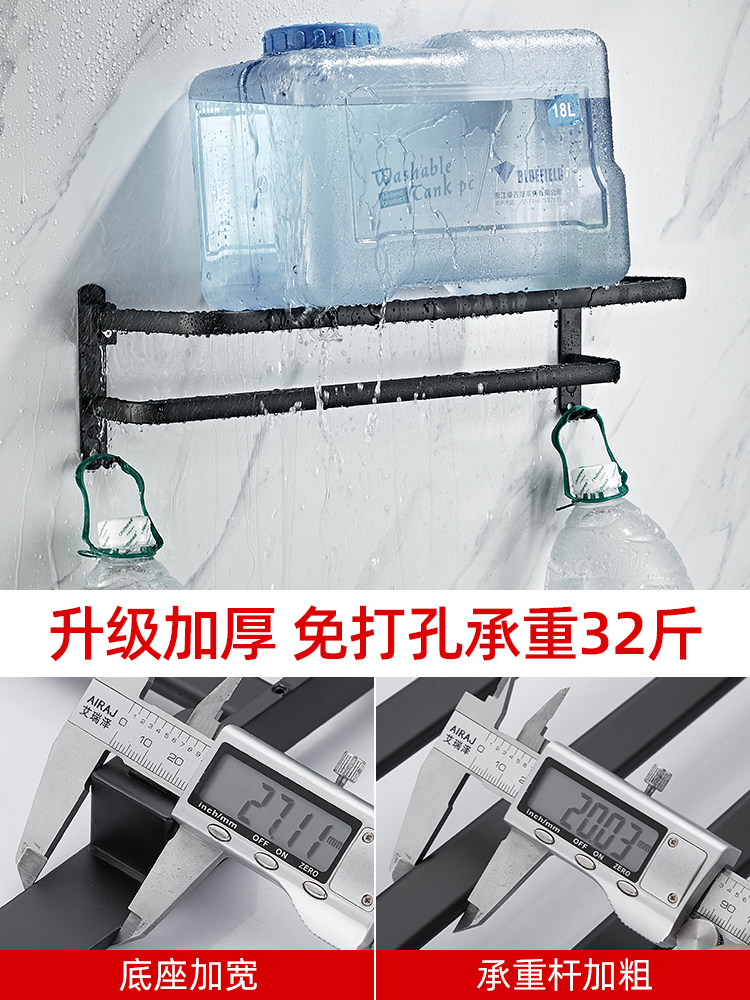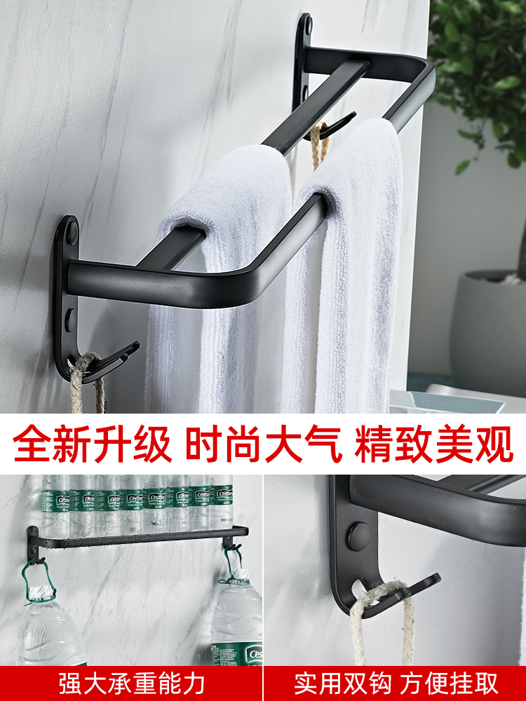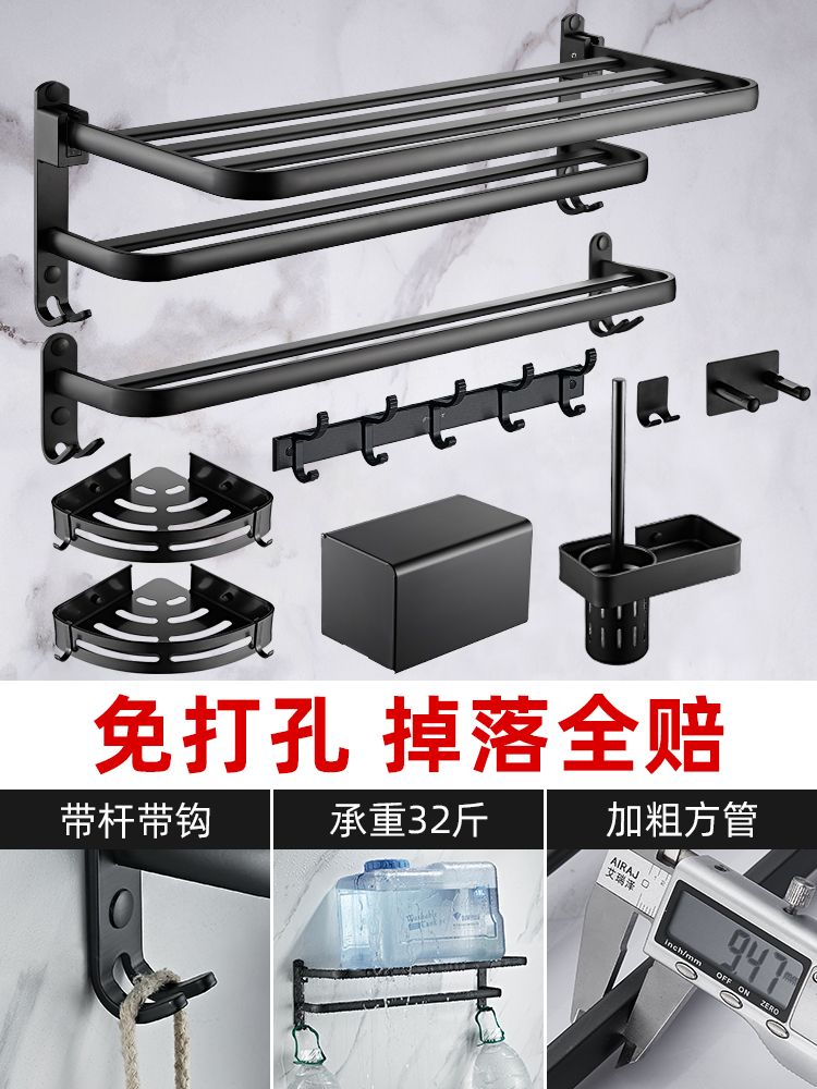 Powder room shelf hole-free wall-mounted space aluminum towel rack Bathroom toilet black bath towel rack toilet