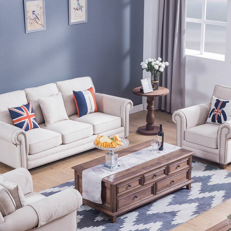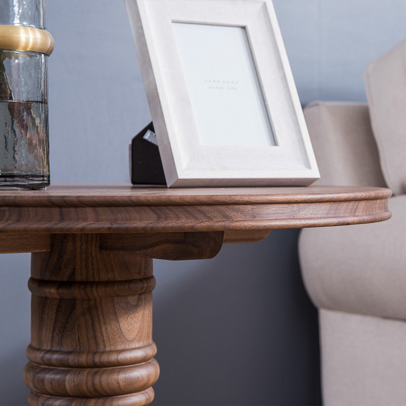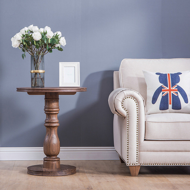 Zobilin pure solid wood side table American small coffee table Double round corner living room black Walnut side table simple