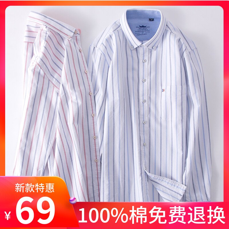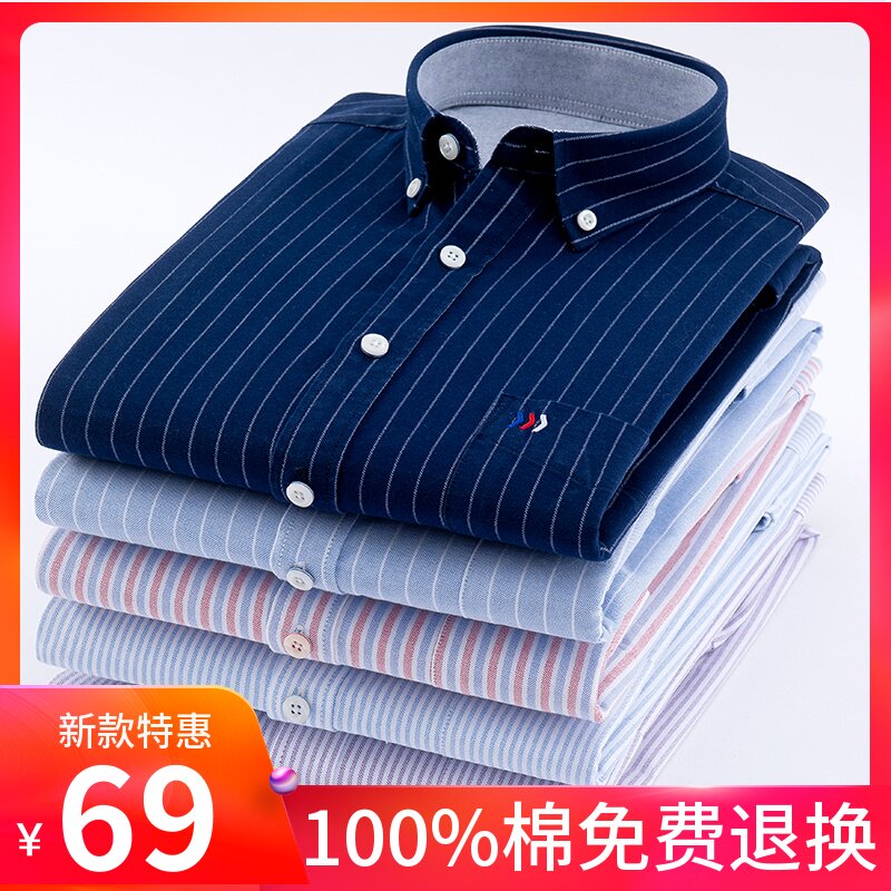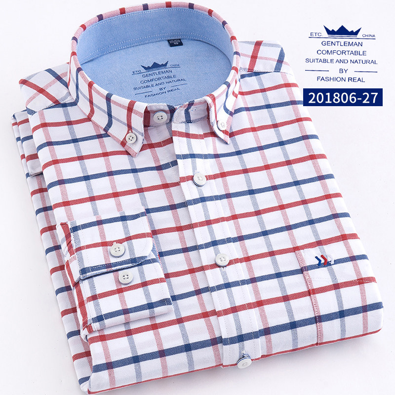 Spring Plaid Pure Cotton Men Long Sleeve Shirt Plaid Youth Business Casual Inch Shirt Men's Clothing Free Ironing Full Cotton Shirt