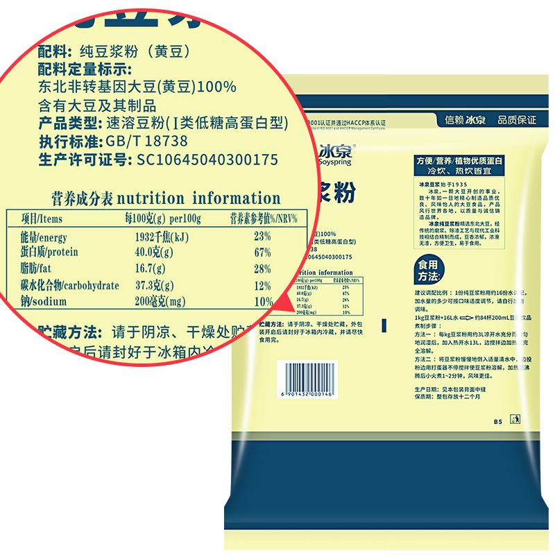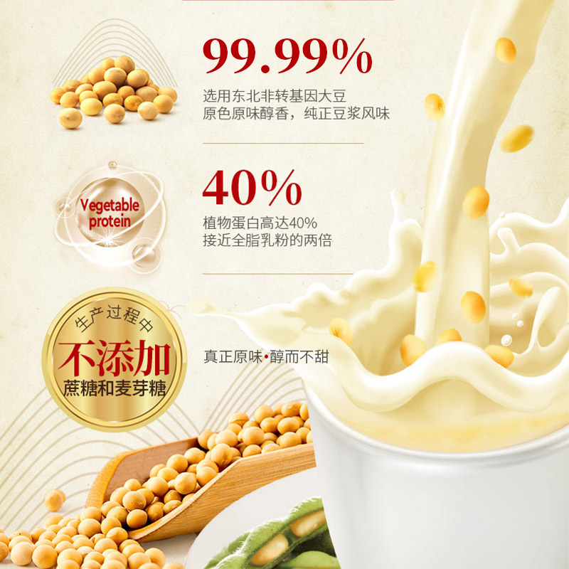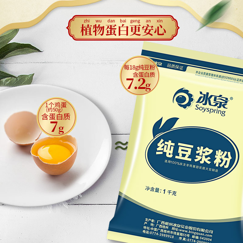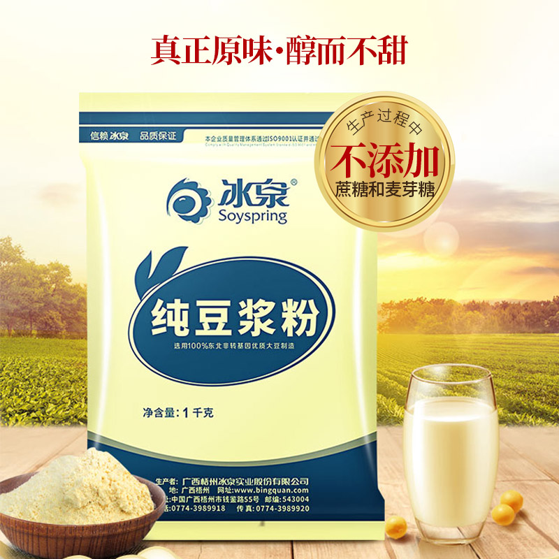 Bingquan Pure Soymilk Powder 1000g Sucrose-free Add Non-genetically modified Nutritional Breakfast Bagged Food Bean Powder