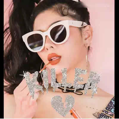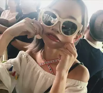 Net red kakaoo Aqin white big frame thin sunglasses travel styling with single-product striped sunglasses women